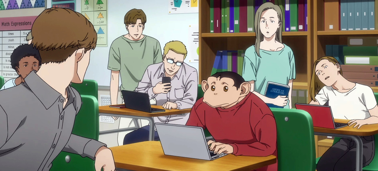 forçar o espectador a escolher. Darwin Jihen é focado em temas como discriminação, ética científica e até terrorismo! Parece quase um thriller político com um macaco no meio.