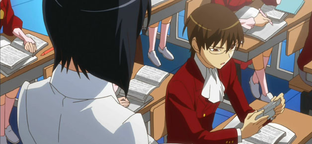 À vista de todos não passa de um falhado ou, como é chamado na escola, de um “otamegane”(otaku + megane), mas apesar de jogar constantemente nas aulas consegue tirar notas perfeitas e poder assim viver no seu mundo dos jogos sem que ninguém o chateie.