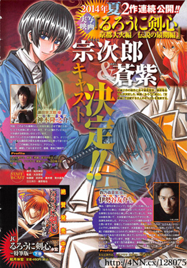 Já foram anunciados mais dois dos actores do novo filme de “Rurouni Kenshin”! Para além de Takeru Sato (Himura Kenshin), Fujiwara Tatsuya (Shishio Makoto), Emi Takei (Kaoru Kamiya), Yuu Aoi (Megumi Takani) e Yosuke Eguchi (Hajime Saito), a sequela trará Ryunosuke Kamiki como Sojiro Seta (braço direito de Shishio) e Yusuke Iseya como Aoshi Shinomori (o líder dos Oniwabanshu).