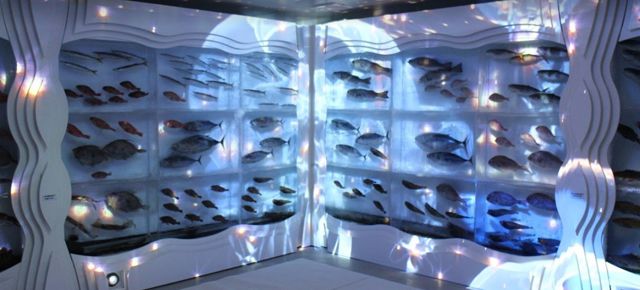 Este aquário serve como uma forma de vermos e conhecermos os vários tipos de peixes e animais aquáticos como são os casos dos caranguejos ou polvos, mas também podemos encontrar objectos incomuns, como garrafas de saquê, flores, entre outros objetos embutidos em enormes blocos de gelo.