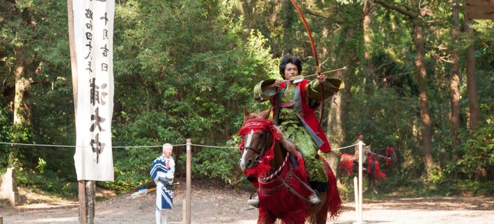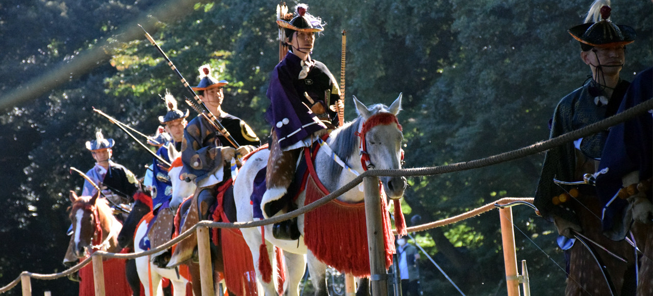 Um dos samurais de Minamoto, chamado Nasu no Yoichi, aceitou o desafio. Ele foi para o mar com o seu cavalo e trespassou o leque com uma flecha. Nasu ganhou muita fama e sua habilidade ainda é lembrada e comemorada hoje em dia. Durante o período Kamakura (1192 – 1334), o tiro com arco montado foi usado como um exercício de treinamento militar para os samurais. Aqueles arqueiros que não demonstraram capacidade suficiente poderiam ser induzidos a realizar o seppuku (suicídio ritual).