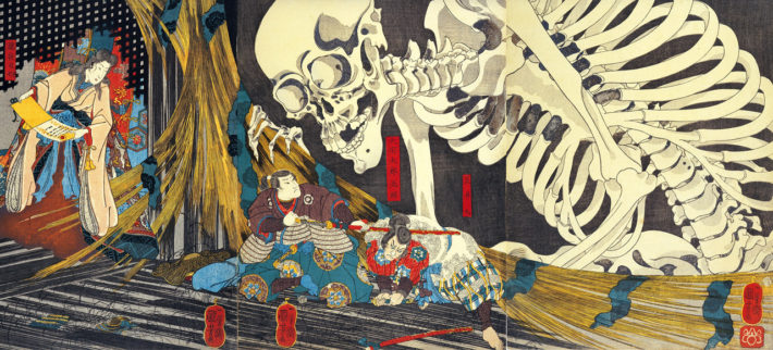 Ainda sobre este yokai existe uma outra lenda que também envolve um descendente de Masakado, mas que tem a sua acção três séculos depois que era Taira no Kiyomori (uma figura importante na história japonesa), que era o líder de um clã samurai que tinha uma posição privilegiada na corte imperial e que era famoso pela sua “mão dura” contra o inimigo. Dizem que ele um dia acordou e foi passear ao seu jardim, mas quando lá chegou viu com surpresa que este estava cheio de crânios, Kiyomori chamou os seus soldados e, enquanto estes se aproximavam, todos os crânios começaram a formar um enorme Oodokuro. O general manteve seu olhar sem medo e, eventualmente, o yokai desapareceu.