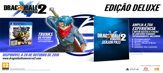 A Bandai Namco Entertainment Europe revelou esta semana, durante a Japan Expo Paris, várias novidades sobre Dragon Ball Xenoverse 2, incluindo ofertas de pré-compra, uma Edição Deluxe, uma Edição de Colecionador, e uma Season Pass. O jogo chega no dia 28 de Outubro deste ano para a Playstation 4, Xbox One, e PC (via steam). Deixo-vos ainda com o mais recente trailer do jogo.
