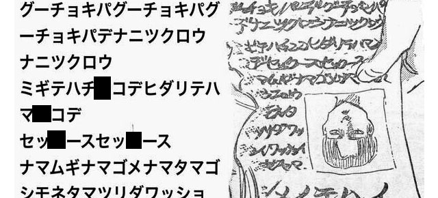 Os fãs do manga com mais sucesso na actualidade, Shingeki no Kyojin descobriram que, a apesar da escrita usada no mundo da série ser uma confusão de símbolos, na realidade tem um sistema de fácil decodificação. Pelo menos nesta imagem em concreto, que segundo os fãs dizem parecer escrita katakana descuidada.