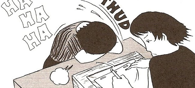 Os dois livros de banda desenhada japonesa que discutiremos de seguida são a preto-e-branco e têm vermelho toda a volta (*). Porém, não poderiam estar mais longe dessa atitude mesquinha e débil que se adivinha na adivinha dos jornais… O seu preto-e-branco não suja as mãos e explorado de um modo tentado e pensado em todas as suas dimensões. E o vermelho surge antes como uma metáfora poderosa das emoções suscitadas e retratadas, e não um efectivo derrame passional.