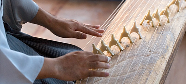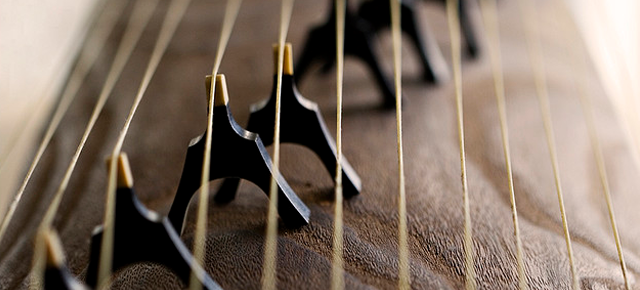 Treze cordas esticadas ao longo de treze “pontes” movediças sobre uma caixa de ressonância.feita de Kiri (madeira tradicional do Japão) formam o Koto, um dos instrumentos musicais mais populares no Japão.