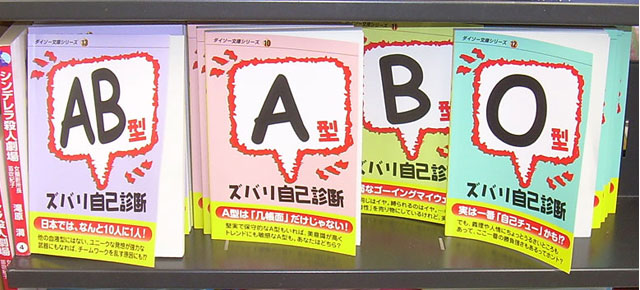 Em 1937, um médico pertencente ao Ministério dos Países Estrangeiros sugeriu que as pessoas do tipo O que tivessem mais regalias que os outros. Nos anos 70 Nomi Masahiko descrevia as pessoas do tipo A como professores exemplares, enquanto os de tipo O como excelentes soldados.